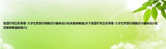 智慧灯塔五彩青春-大学生思想引领路径与载体设计优秀案例集锦(关于智慧灯塔五彩青春-大学生思想引领路径与载体设计优秀案例集锦的简介)