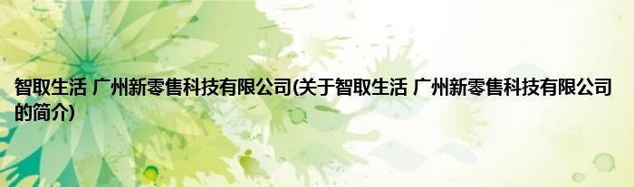 本文关于智取生活 广州新零售科技有限公司的简介就讲解完毕,希望对大家有所帮助。