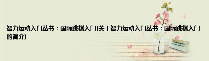 大家好,智力运动入门丛书:国际跳棋入门,关于智力运动入门丛书:国际跳棋入门的简介很多人还不知道,现在让我们一起来看看吧!