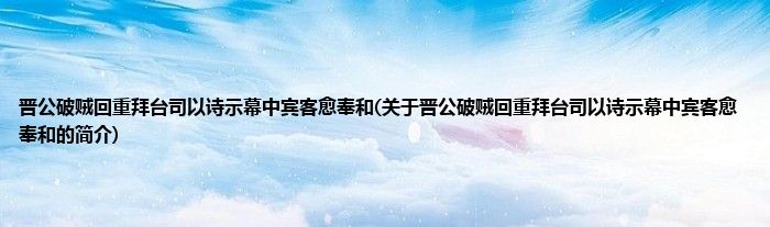 本文关于晋公破贼回重拜台司以诗示幕中宾客愈奉和的简介就讲解完毕,希望对大家有所帮助。