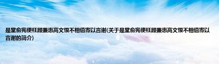 本文关于是堂俞宪使枉顾兼惠高文恨不相值寄以言谢的简介就讲解完毕,希望对大家有所帮助。
