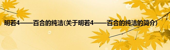 本文关于明若4——百合的纯洁的简介就讲解完毕,希望对大家有所帮助。