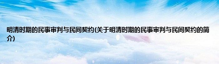 大家好,明清时期的民事审判与民间契约,关于明清时期的民事审判与民间契约的简介很多人还不知道,现在让我们一起来看看吧!