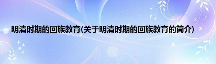 本文关于明清时期的回族教育的简介就讲解完毕,希望对大家有所帮助。