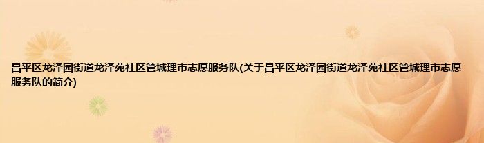 昌平区龙泽园街道龙泽苑社区管城理市志愿服务队(关于昌平区龙泽园街道龙泽苑社区管城理市志愿服务队的简介)