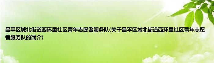 本文关于昌平区城北街道西环里社区青年志愿者服务队的简介就讲解完毕,希望对大家有所帮助。