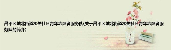 本文关于昌平区城北街道水关社区青年志愿者服务队的简介就讲解完毕,希望对大家有所帮助。