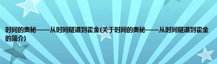 本文关于时间的奥秘——从时间隧道到霍金的简介就讲解完毕,希望对大家有所帮助。