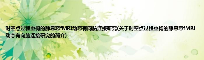 大家好,时空点过程重构的静息态fMRI动态有向脑连接研究,关于时空点过程重构的静息态fMRI动态有向脑连接研究的简介很多人还不知道,现在让我们一起来看看吧!