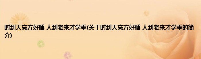 本文关于时到天亮方好睡,人到老来才学乖的简介就讲解完毕,希望对大家有所帮助。