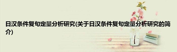 大家好,日汉条件复句定量分析研究,关于日汉条件复句定量分析研究的简介很多人还不知道,现在让我们一起来看看吧!