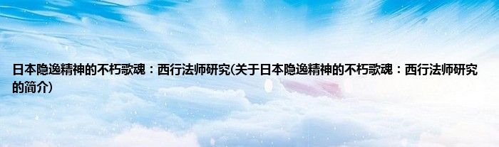 本文关于日本隐逸精神的不朽歌魂:西行法师研究的简介就讲解完毕,希望对大家有所帮助。