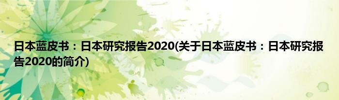 本文关于日本蓝皮书:日本研究报告2020的简介就讲解完毕,希望对大家有所帮助。