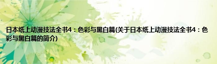 本文关于日本纸上动漫技法全书4:色彩与黑白篇的简介就讲解完毕,希望对大家有所帮助。