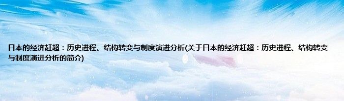 大家好,日本的经济赶超:历史进程、结构转变与制度演进分析,关于日本的经济赶超:历史进程、结构转变与制度演进分析的简介很多人还不知道,现在让我们一起来看看吧!