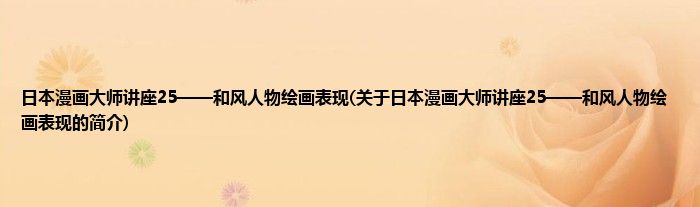日本漫画大师讲座25——和风人物绘画表现(关于日本漫画大师讲座25——和风人物绘画表现的简介)