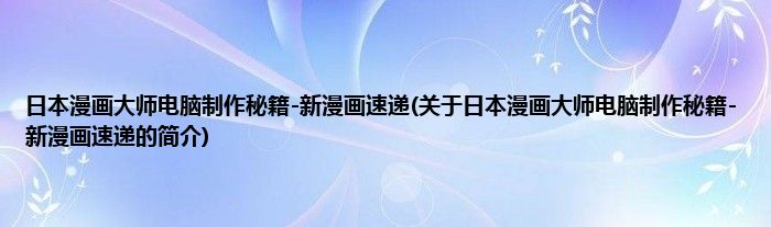 日本漫画大师电脑制作秘籍-新漫画速递(关于日本漫画大师电脑制作秘籍-新漫画速递的简介)