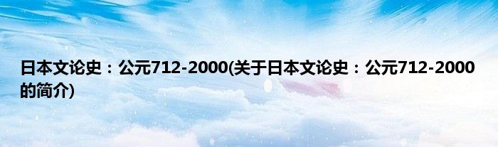 本文关于日本文论史:公元712-2000的简介就讲解完毕,希望对大家有所帮助。