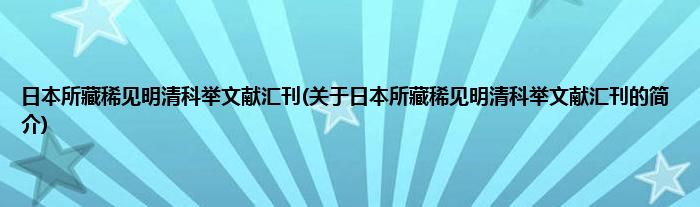 本文关于日本所藏稀见明清科举文献汇刊的简介就讲解完毕,希望对大家有所帮助。