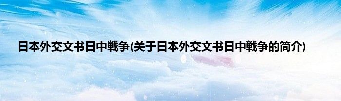 大家好,日本外交文书日中戦争,关于日本外交文书日中戦争的简介很多人还不知道,现在让我们一起来看看吧!