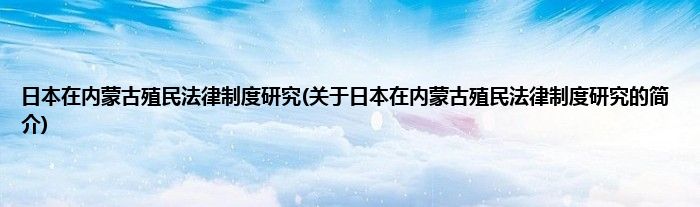 本文关于日本在内蒙古殖民法律制度研究的简介就讲解完毕,希望对大家有所帮助。
