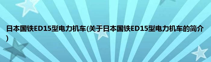 1、 ED15型电力机车(日语:ED15形电気机関车)是日本铁路的第一代干线电力机车车型之一,由日立制作所于1924年(大正13年)设计制造,适用于供电制式为1500伏直流电的电气化铁路。