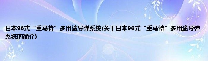 本文关于日本96式“重马特”多用途导弹系统的简介就讲解完毕,希望对大家有所帮助。