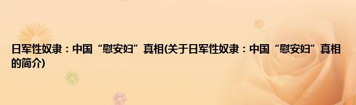 本文关于日军性奴隶:中国“慰安妇”真相的简介就讲解完毕,希望对大家有所帮助。
