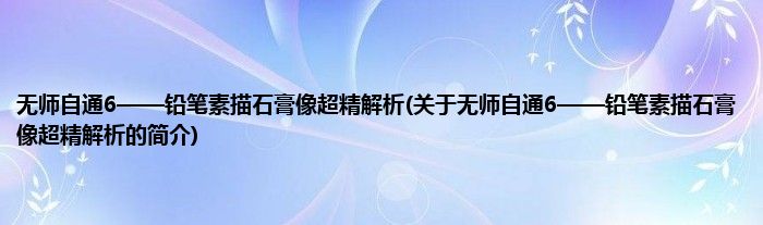 本文关于无师自通6——铅笔素描石膏像超精解析的简介就讲解完毕,希望对大家有所帮助。