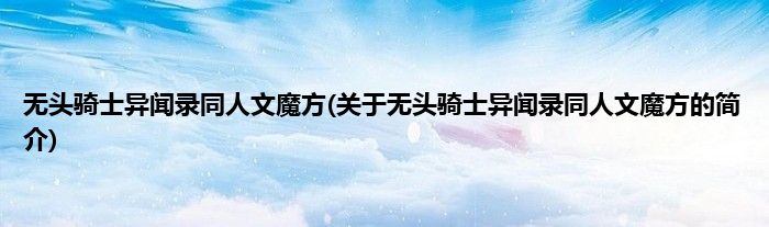 大家好,无头骑士异闻录同人文魔方,关于无头骑士异闻录同人文魔方的简介很多人还不知道,现在让我们一起来看看吧!