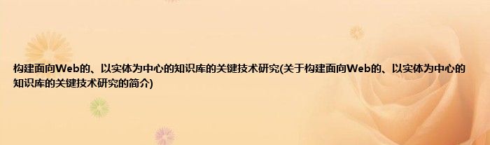 构建面向Web的、以实体为中心的知识库的关键技术研究(关于构建面向Web的、以实体为中心的知识库的关键技术研究的简介)