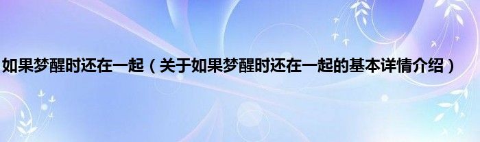 本文关于如果梦醒时还在一起的基本详情介绍就讲解完毕,希望对大家有所帮助。