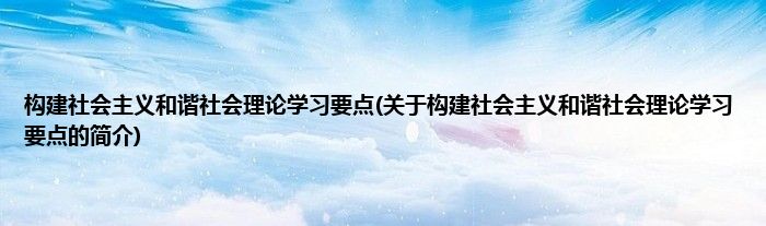 大家好,构建社会主义和谐社会理论学习要点,关于构建社会主义和谐社会理论学习要点的简介很多人还不知道,现在让我们一起来看看吧!