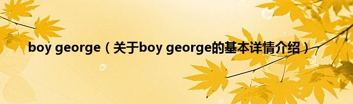 本文关于boy george的基本详情介绍就讲解完毕,希望对大家有所帮助。