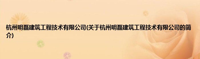 本文关于杭州明磊建筑工程技术有限公司的简介就讲解完毕,希望对大家有所帮助。