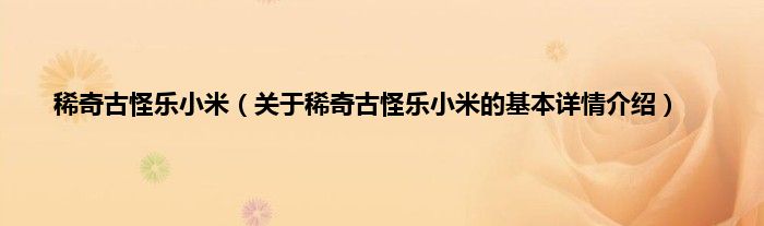 本文关于稀奇古怪乐小米的基本详情介绍就讲解完毕,希望对大家有所帮助。