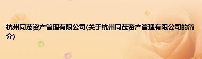 本文关于杭州同茂资产管理有限公司的简介就讲解完毕,希望对大家有所帮助。