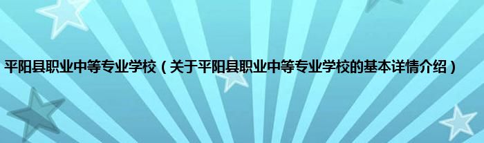 本文关于平阳县职业中等专业学校的基本详情介绍就讲解完毕,希望对大家有所帮助。