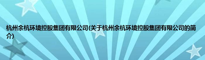 本文关于杭州余杭环境控股集团有限公司的简介就讲解完毕,希望对大家有所帮助。