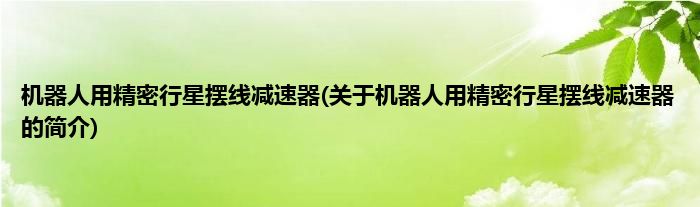 本文关于机器人用精密行星摆线减速器的简介就讲解完毕,希望对大家有所帮助。