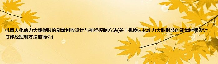 机器人化动力大腿假肢的能量回收设计与神经控制方法(关于机器人化动力大腿假肢的能量回收设计与神经控制方法的简介)