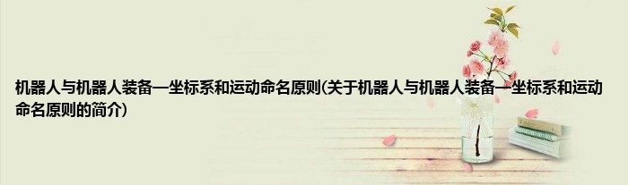 大家好,机器人与机器人装备—坐标系和运动命名原则,关于机器人与机器人装备—坐标系和运动命名原则的简介很多人还不知道,现在让我们一起来看看吧!