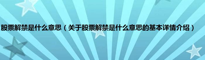 本文关于股票解禁是什么意思的基本详情介绍就讲解完毕,希望对大家有所帮助。