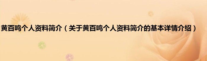 本文关于黄百鸣个人资料简介的基本详情介绍就讲解完毕,希望对大家有所帮助。
