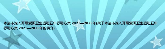 本溪市深入开展爱国卫生运动五年行动方案 2021—2025年(关于本溪市深入开展爱国卫生运动五年行动方案 2021—2025年的简介)