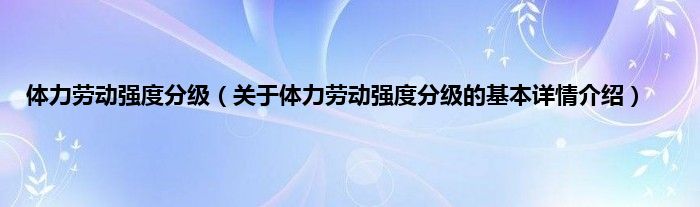 本文关于体力劳动强度分级的基本详情介绍就讲解完毕,希望对大家有所帮助。