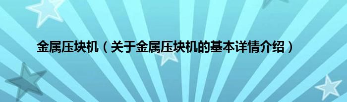 本文关于金属压块机的基本详情介绍就讲解完毕,希望对大家有所帮助。