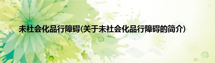 本文关于未社会化品行障碍的简介就讲解完毕,希望对大家有所帮助。