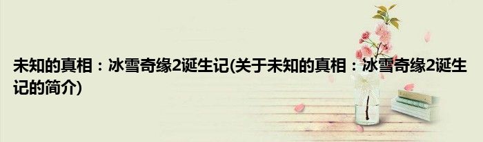 本文关于未知的真相:冰雪奇缘2诞生记的简介就讲解完毕,希望对大家有所帮助。