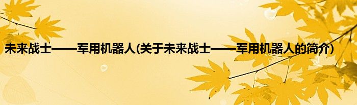 本文关于未来战士——军用机器人的简介就讲解完毕,希望对大家有所帮助。